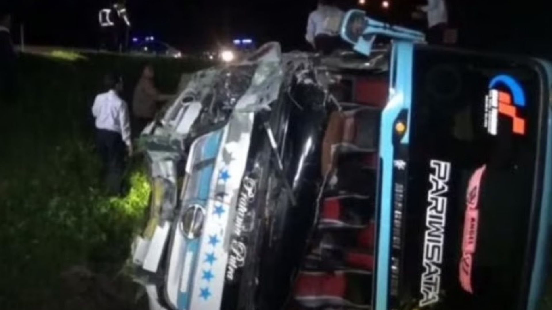 Kabarnya, dua orang meninggal dunia dan banyak yang terluka. Sebanyak 48 orang berada di dalam bus tersebut. Penumpang bus meliputi 44 siswa, 2 guru, dan 2 kru bus.