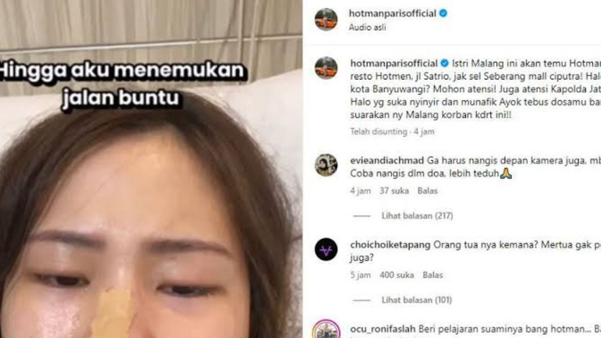 Sang ibu saat ini tengah mendapatkan perawatan medis intensif di Rumah Sakit Fatmawati.